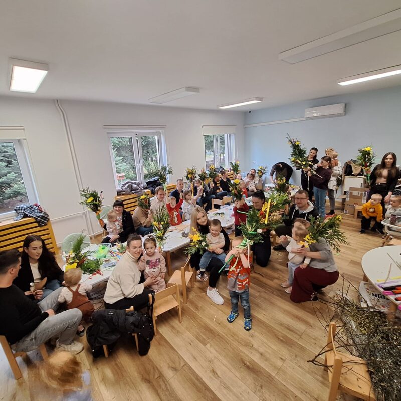 Wielkanocne palmy. Wasztaty rodzinne w Katolickim Żłobku Maciuś w Andrychowie.